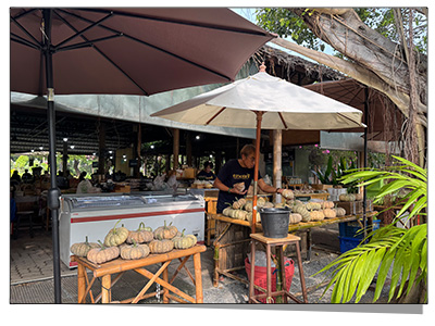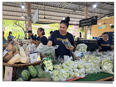 นักเดินทางสำรวจตลาดนี้ในช่วงเช้า มีลูกค้า นักท่องเที่ยว เดินเข้ามาซื้อสินค้าอย่างคึกคัก ราคามิตรภาพ ยิ่งถ้าเราซื้อสินค้าจำนวนมาก ราคาจะถูกลง เจ้าหน้าที่ศูนย์ฯ เล่าว่า "มั่นใจสินค้าที่นี่ เป็นสินค้าออแกนนิคทั้งนั้น มีเจ้าหน้าที่ของเราเข้าไปอบรมชาวบ้าน ให้ความรู้ ปลูกผัก ผลไม้ ไร้สารเคมี ทานแล้วปลอดภัยต่อร่างกาย"
