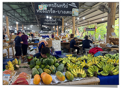 และที่สำคัญด้านหน้าของศูนย์ฯนี้ มีการปรับปรุงเป็น "ตลาดสดสุขใจ" ตลาดออแกนนิค ซึ่งจำหน่ายสินค้าเกษตร ข้าว ผัก ผลไม้ สินค้าต่างๆ ที่ปลูกโดยไร้สารเคมี จากเกษตรกรตัวจริงในย่านนี้